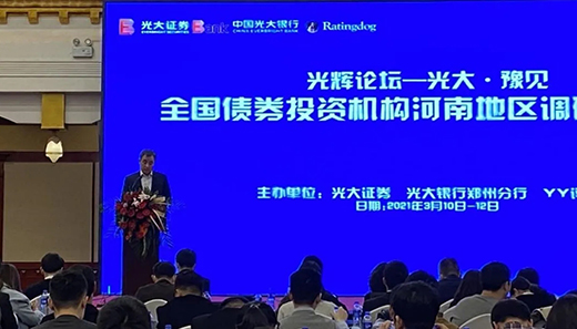 鄭州地產(chǎn)應主辦方光大證券、光大銀行鄭州分行邀請參加“光輝論壇—光大·豫見 全國債券投資機構(gòu)河南地區(qū)調(diào)研對接會”。各方投資機構(gòu)涵蓋銀行、證券、保險、信托、基金、資管等150余家投資人及河南省市20余家發(fā)行人云集此次調(diào)研會,鄭州地產(chǎn)作為市屬城投企業(yè),參與此次調(diào)研匯報,積極發(fā)聲、廣泛宣傳,多角度彰顯區(qū)域發(fā)展?jié)摿Α?/span>