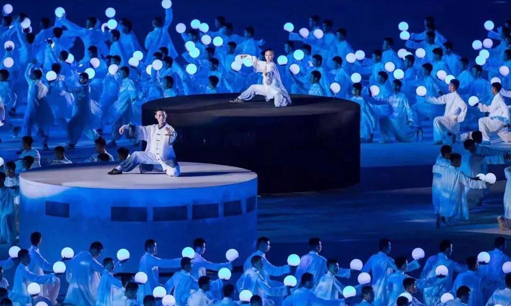 當現(xiàn)場屏幕通過虛擬技術(shù)應用,呈現(xiàn)出美麗的畫面,讓現(xiàn)場觀眾仿佛置身北國北川、南嶺飛瀑之中,觀眾都情不自禁地揮舞起了手中的國旗為他們的表演喝彩!為我們偉大的祖國喝彩!1000架無人機從奧體中心廣場升起迅速變換成中中的造型,點燃民族運動會的火炬。