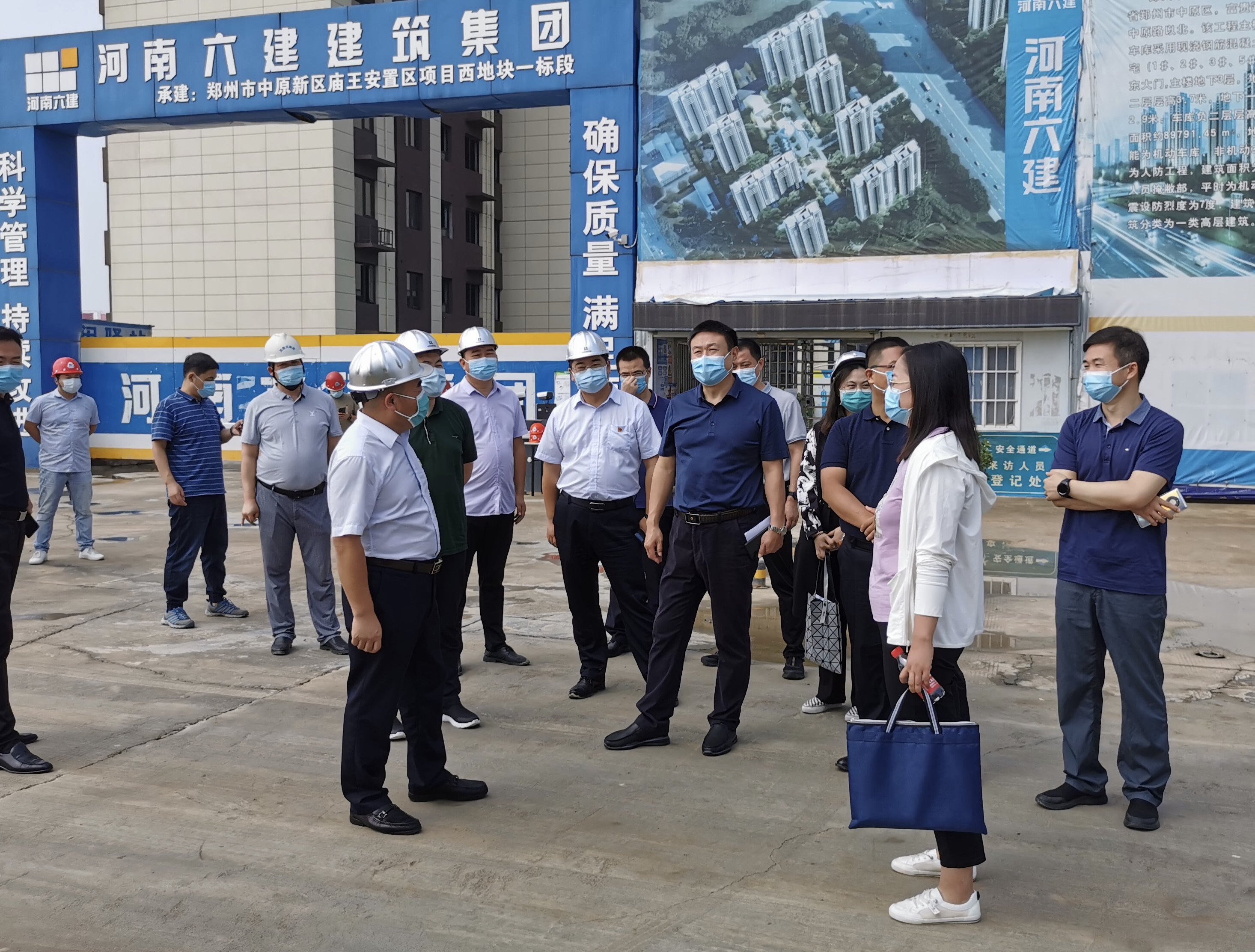 為加快安置房建設(shè),高質(zhì)量完成2021年度各項(xiàng)重點(diǎn)工作任務(wù),根據(jù)市委、市政府關(guān)于全市安置房建設(shè)的總體部署和要求,9月7日上午,鄭州市考評(píng)辦處長(zhǎng)徐彥民一行到鄭州地產(chǎn)集團(tuán)西流湖公司承建的中原新區(qū)起步區(qū)安置房項(xiàng)目對(duì)工程進(jìn)度及年度目標(biāo)完成情況進(jìn)行抽查。市考評(píng)辦副處長(zhǎng)丁樹偉、市高品質(zhì)城建領(lǐng)導(dǎo)小組辦公室綜合組組長(zhǎng)劉楊,市國(guó)資委考核分配處副處長(zhǎng)安培、規(guī)劃處副處長(zhǎng)于文峰,地產(chǎn)集團(tuán)黨委委員、董事長(zhǎng)助理馮洪濤,西流湖公司黨支部書記、董事長(zhǎng)、總經(jīng)理吉獻(xiàn)亮,副總經(jīng)理昌磊等陪同檢查。